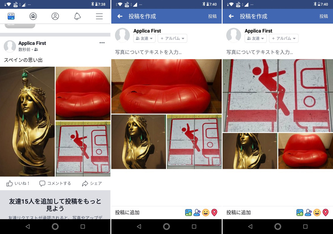 Facebookで写真を複数枚同時に投稿する方法と画像の並び方を解説